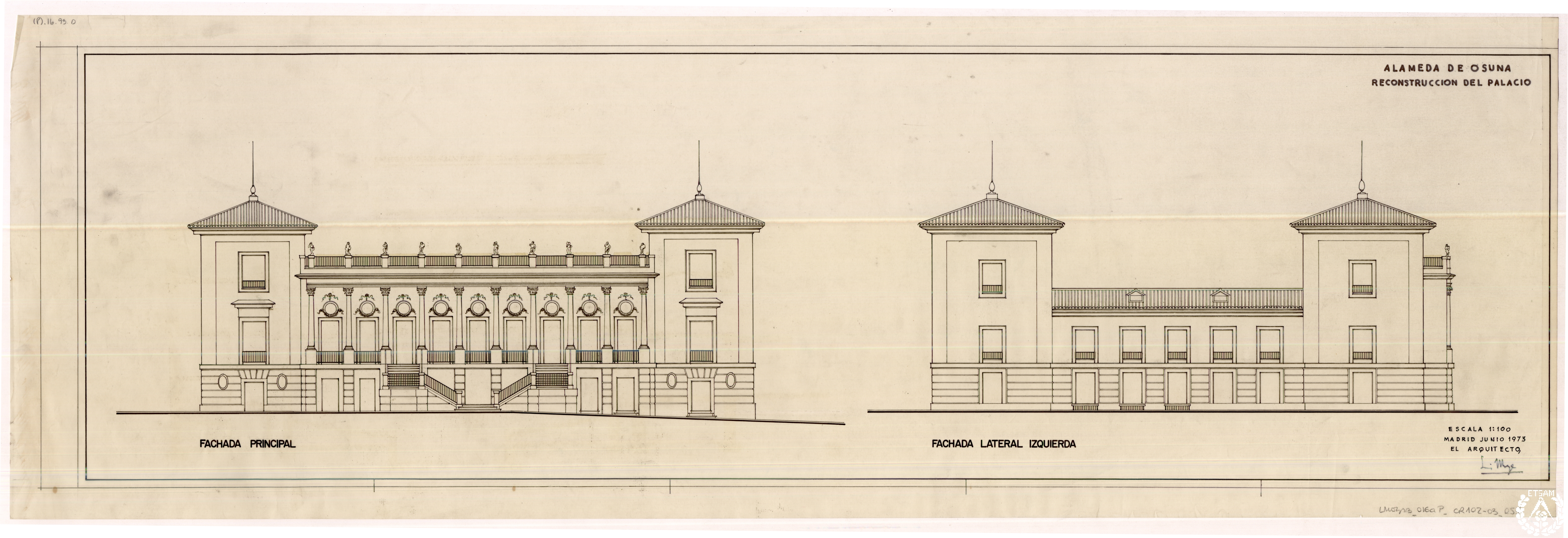 Alameda de Osuna. Reconstrucción del palacio. Fachada principal. Fachada norte