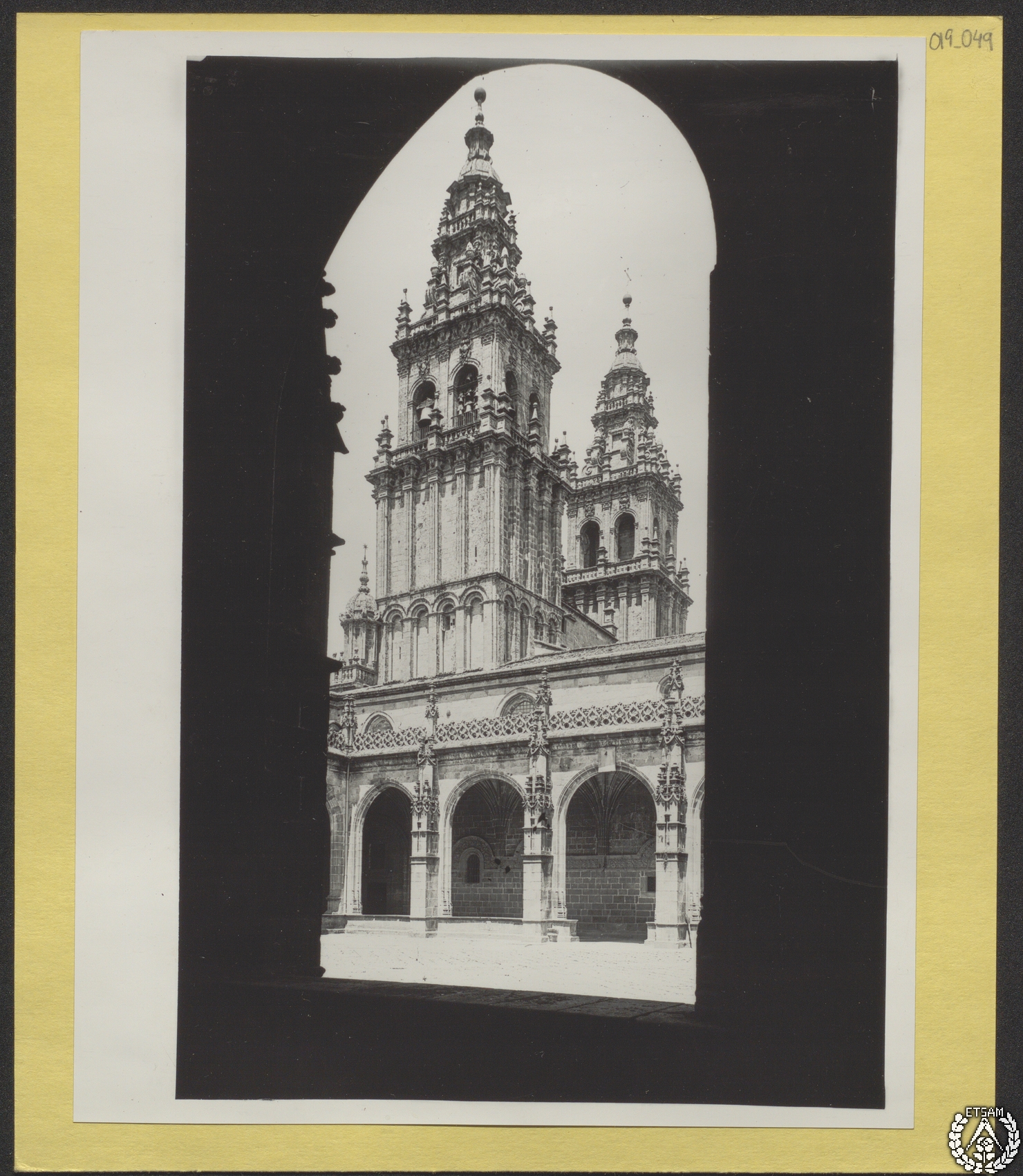 Catedral de Santiago de Compostela. Claustro [Vista de las torres de la fachada del Obradoiro]