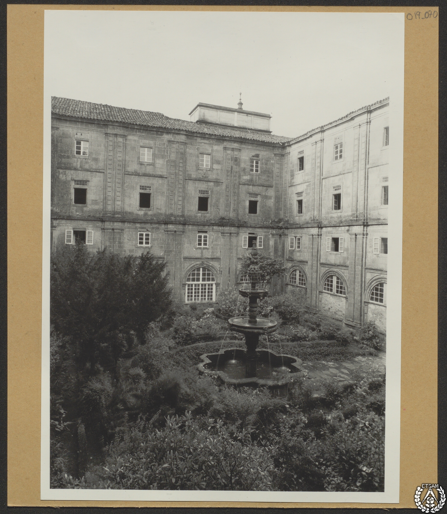Convento de San Martín Pinario en Santiago de Compostela. Patio de las "Oficinas" y fuente de Casas Novoa
